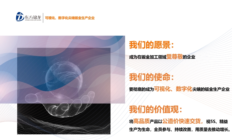 广州东方锦龙智能产品有限公司,是广州南沙东方红电器制造有限公司的控股子公司,成立于2021年,位于美丽的粤港澳大湾区明珠——广州南沙区。我们拥有25000㎡的自有生产厂房,全套高端钣金加工的生产设备,公司取得了环评资质,拥有两条自动化喷涂生产线,钣金产品所有生产工序均在园区内完成,无需外发。